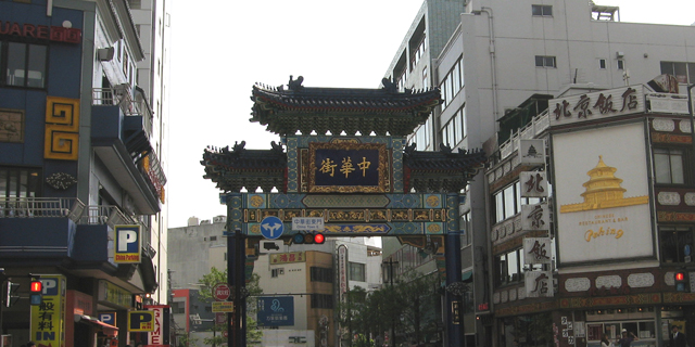 山下公園から陸側に歩いていくとまもなく、中華街東門が見えてきます。