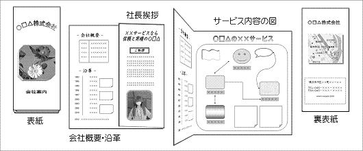 ますのでここにキャッチフレーズや社長挨拶などを載せるとよいでしょう。住所等は裏表紙に載せます。