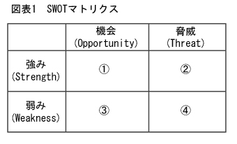 断材料を得ることができます。具体的には図表1の「強み」「弱み」「機会」「脅威」に自社の分析結