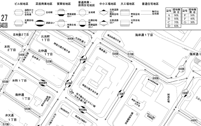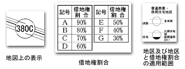 権割合を示す記号とともに1平方メートル当たりの価額(千円単位)という形式で表示されています。